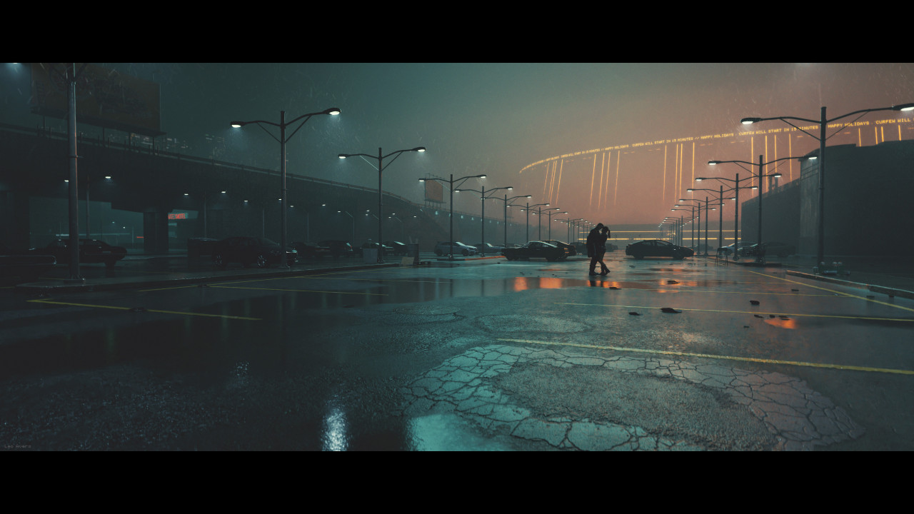 情侣、AI艺术、路灯、汽车