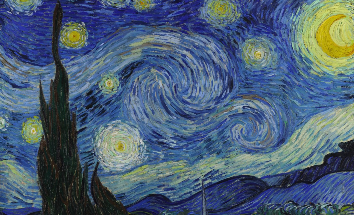 文森特·梵高、云、柏树、灌木丛、蓝色、绘画、古典艺术