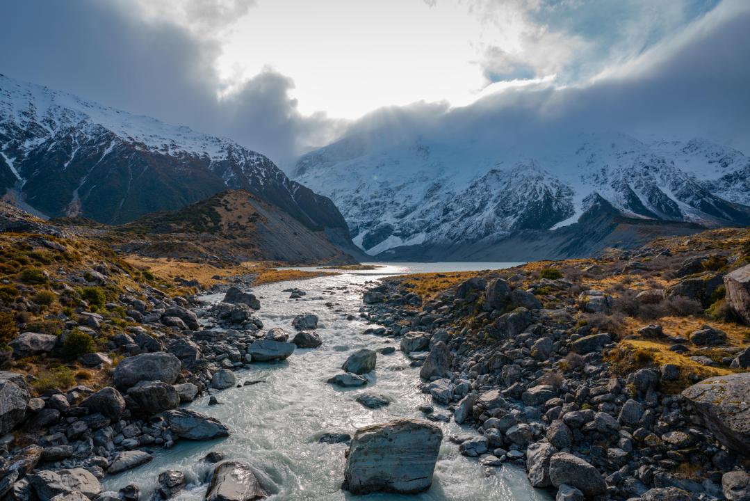 风景、自然、摄影、山脉、新西兰库克山、雪、峰、云、日落