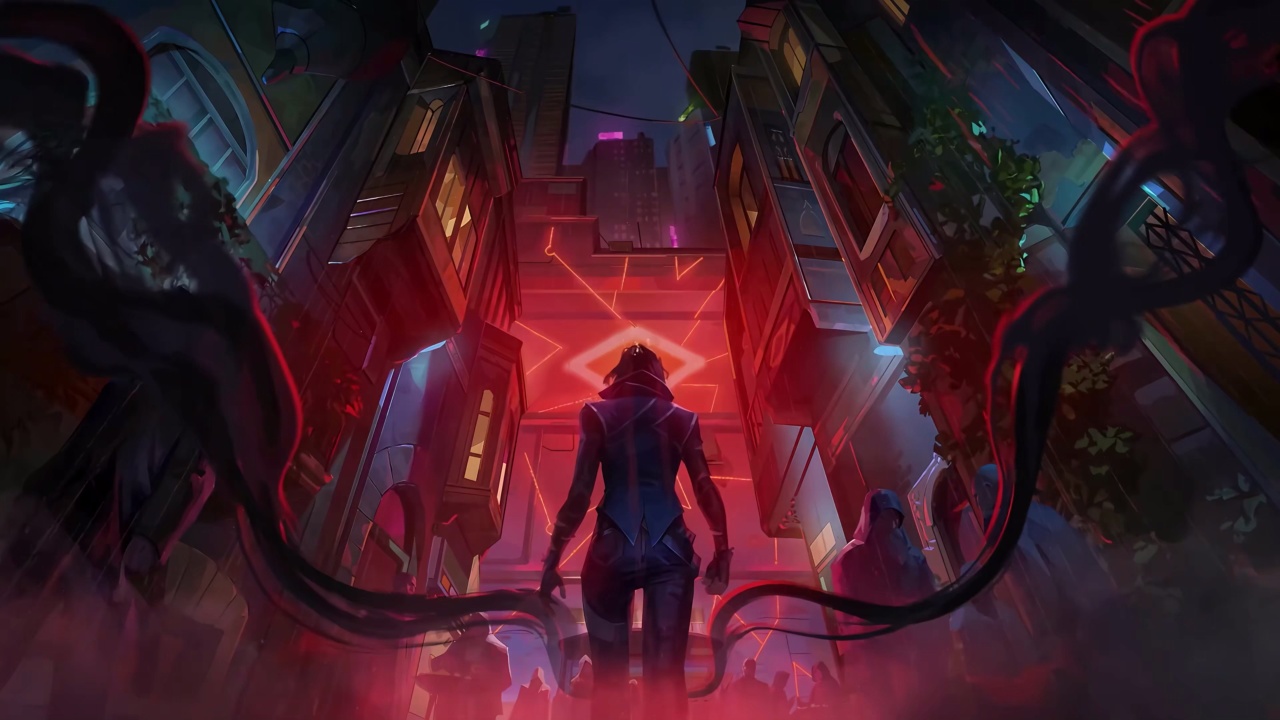 阿卡利、英雄联盟、游戏CG、霓虹灯、青色、红色