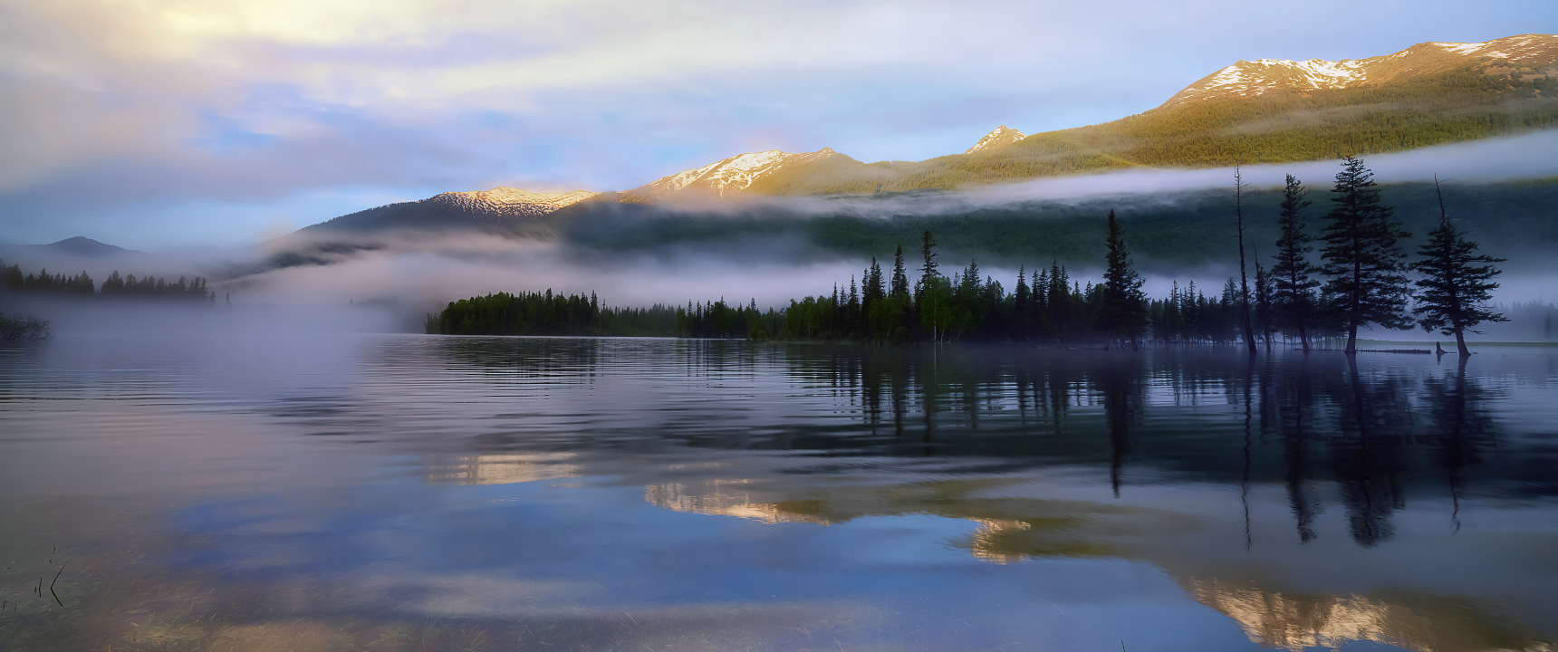 山间雾气与倒影