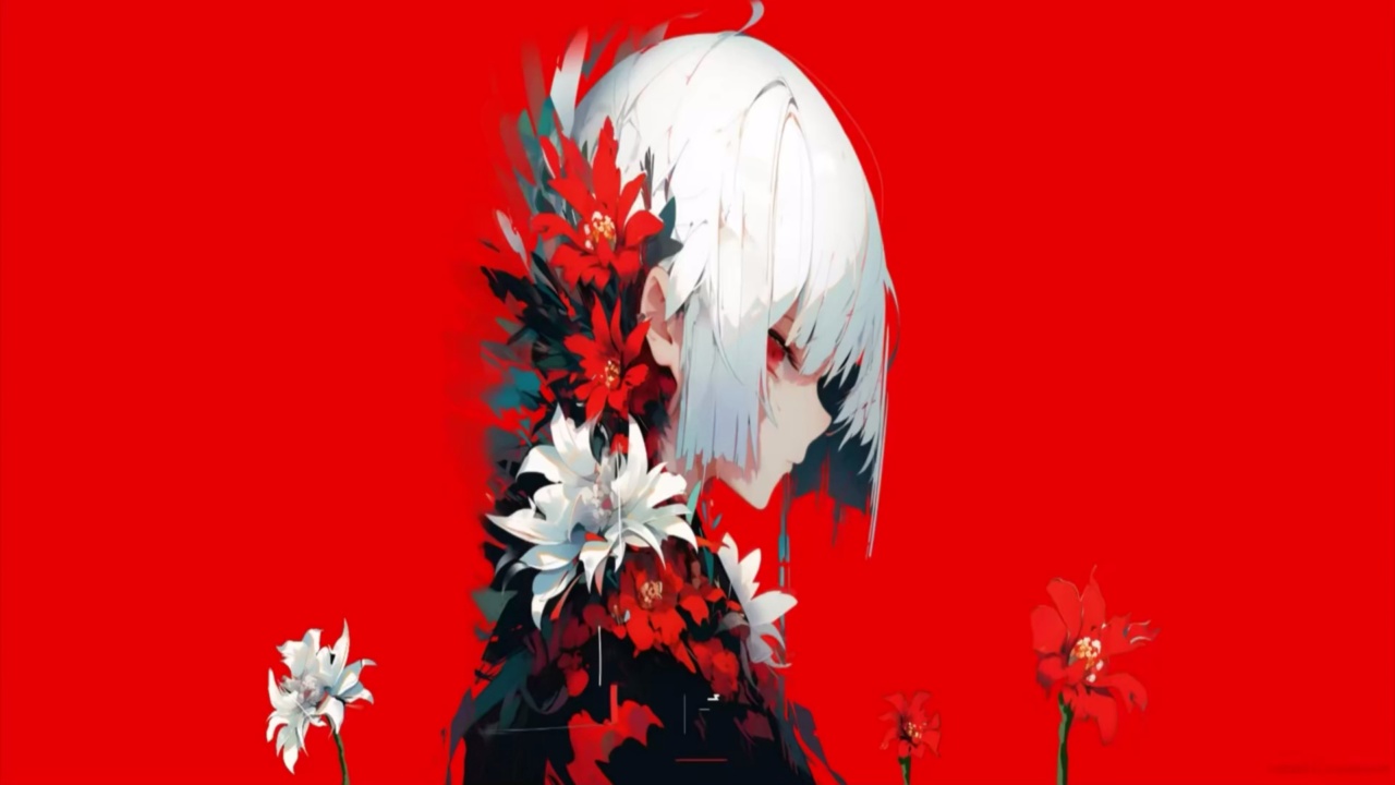花丛中的动漫女孩