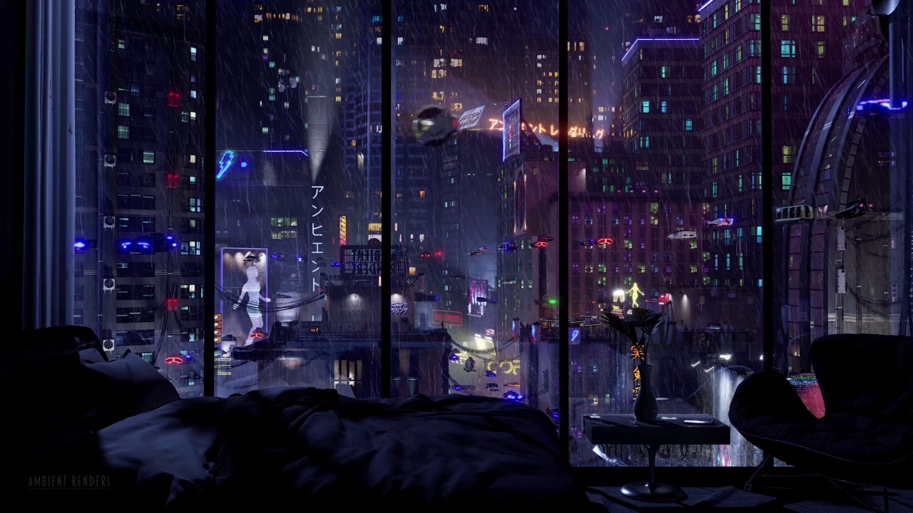 赛博朋克梦境:雨夜都市的静谧时刻