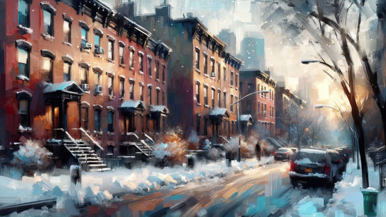 城市、雪景
