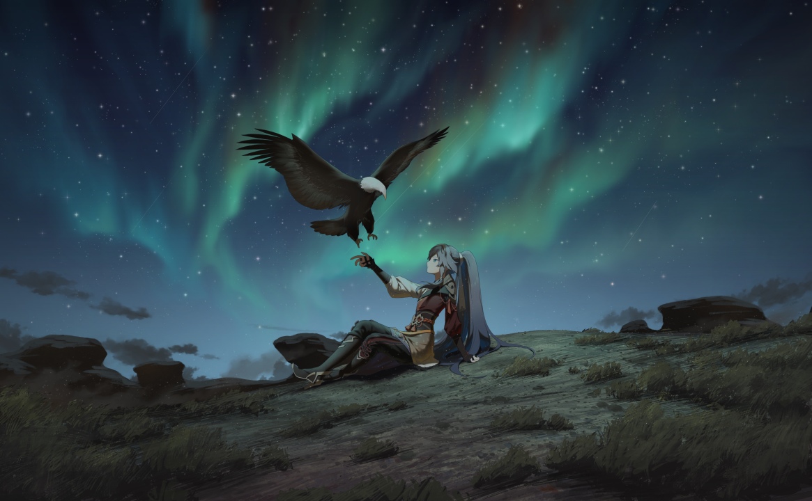 动漫女孩、动漫、AI艺术、图片、鹰、极光