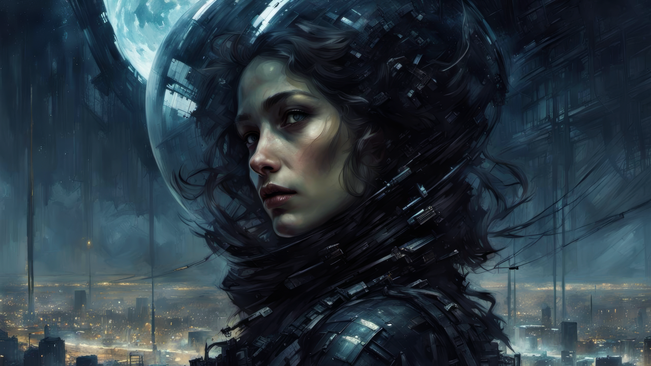 女性、科幻、人工智能艺术、黑暗、夜空