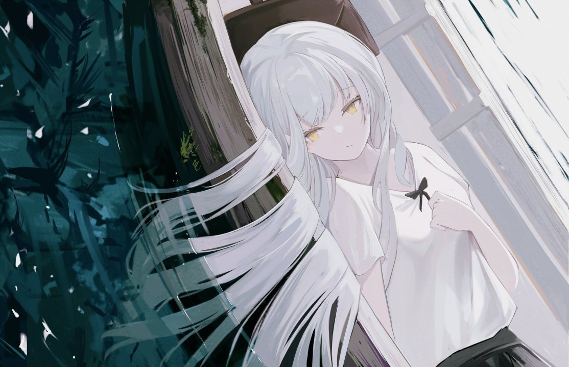 白发、长发、仰卧、躺着、船、湖、动漫女孩、水