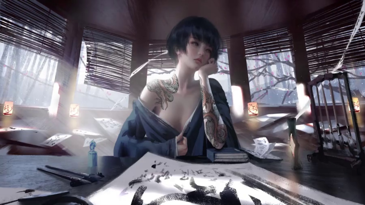 武士、动漫女孩、二次元