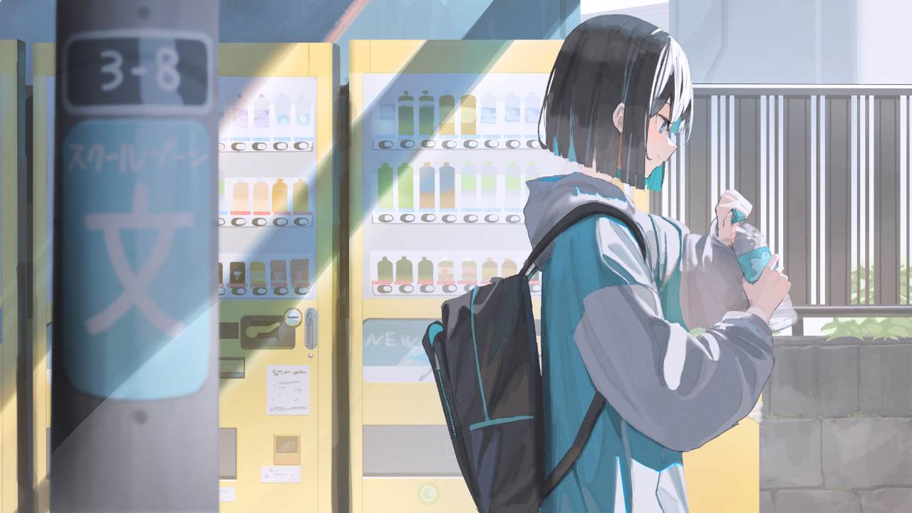 动漫女孩在自动售货机前