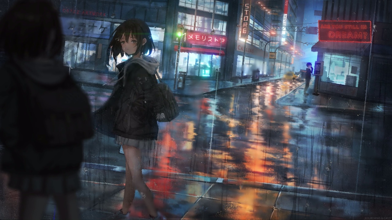 城市、动漫女孩、二次元