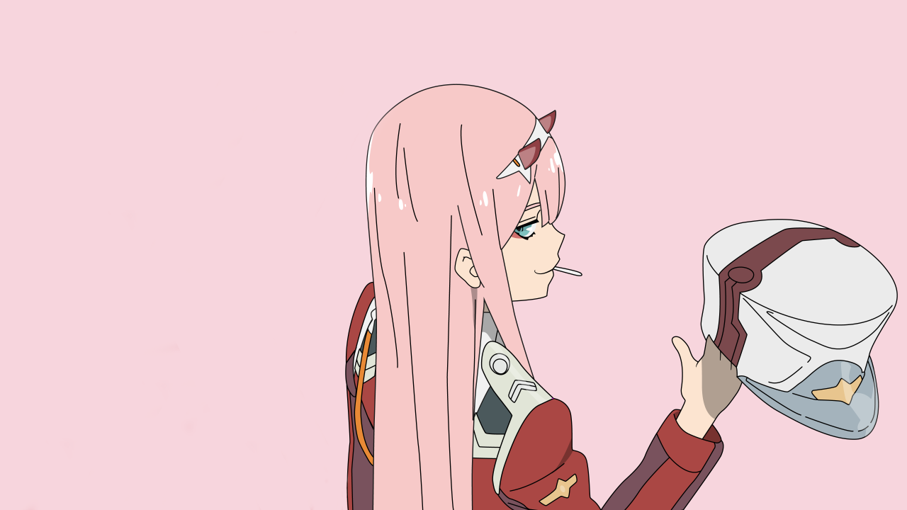 粉红色的头发、帽子、动漫女孩、制服、简单的背景、粉红色的背景、极简主义、零零二号、弗兰的亲爱的、国家队