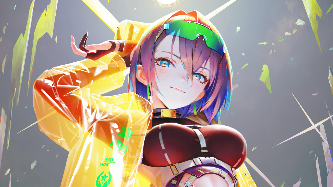 动漫、女孩、黄色雨衣、眼镜、裁剪