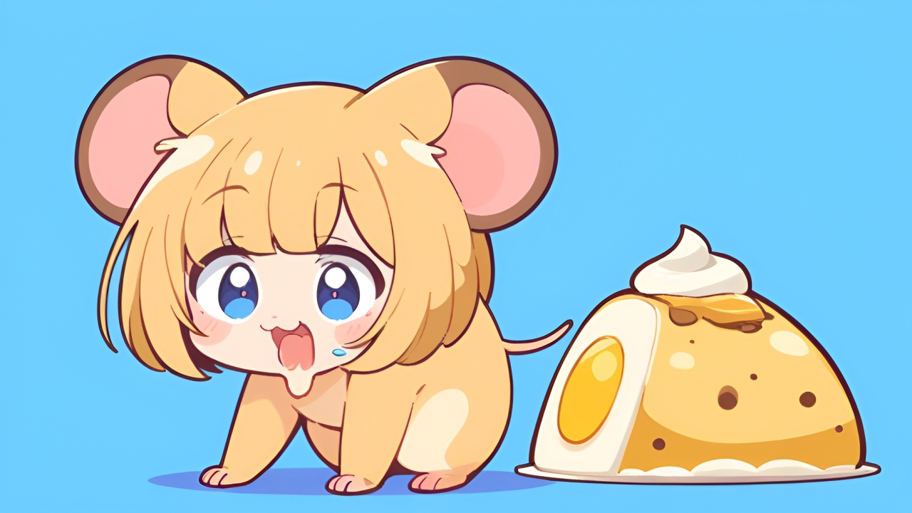 萌宠甜点梦:可爱卡通小老鼠与美味布丁的梦幻邂逅