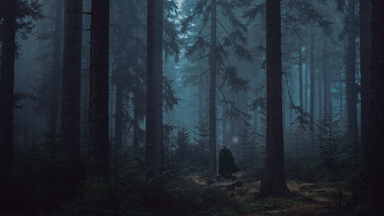 神秘森林中的孤独身影