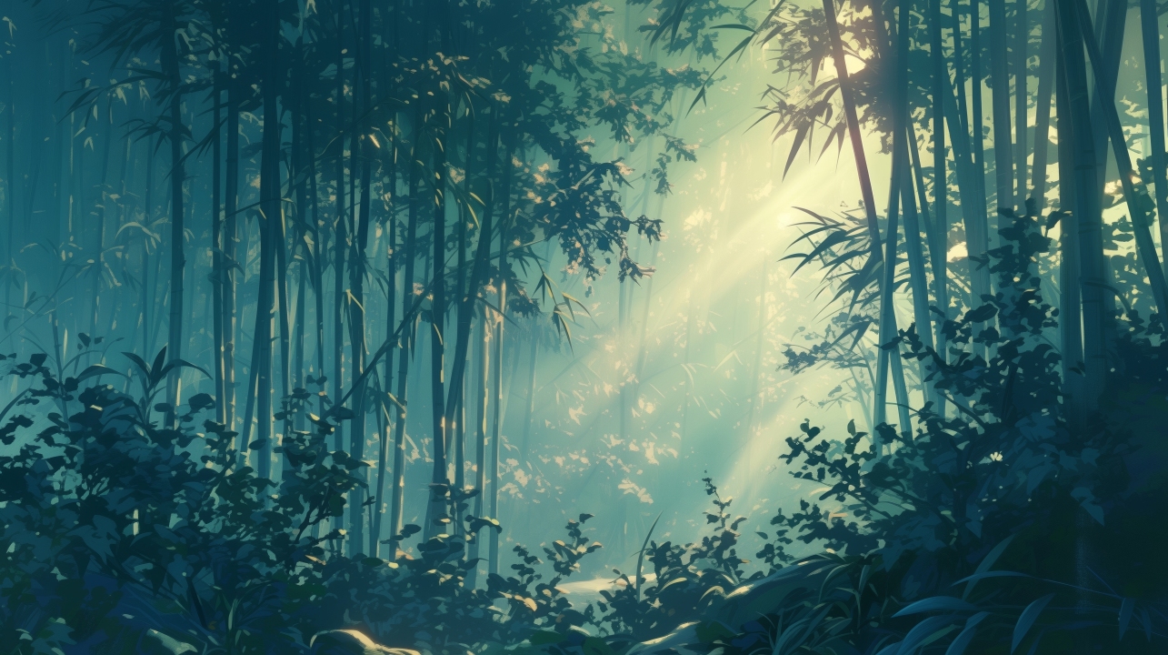 AI艺术、插画、竹子、森林