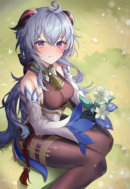 蓝头发、蓝眼睛、马尾辫、动漫、女孩、原神、龟里亚卡、火、艺术