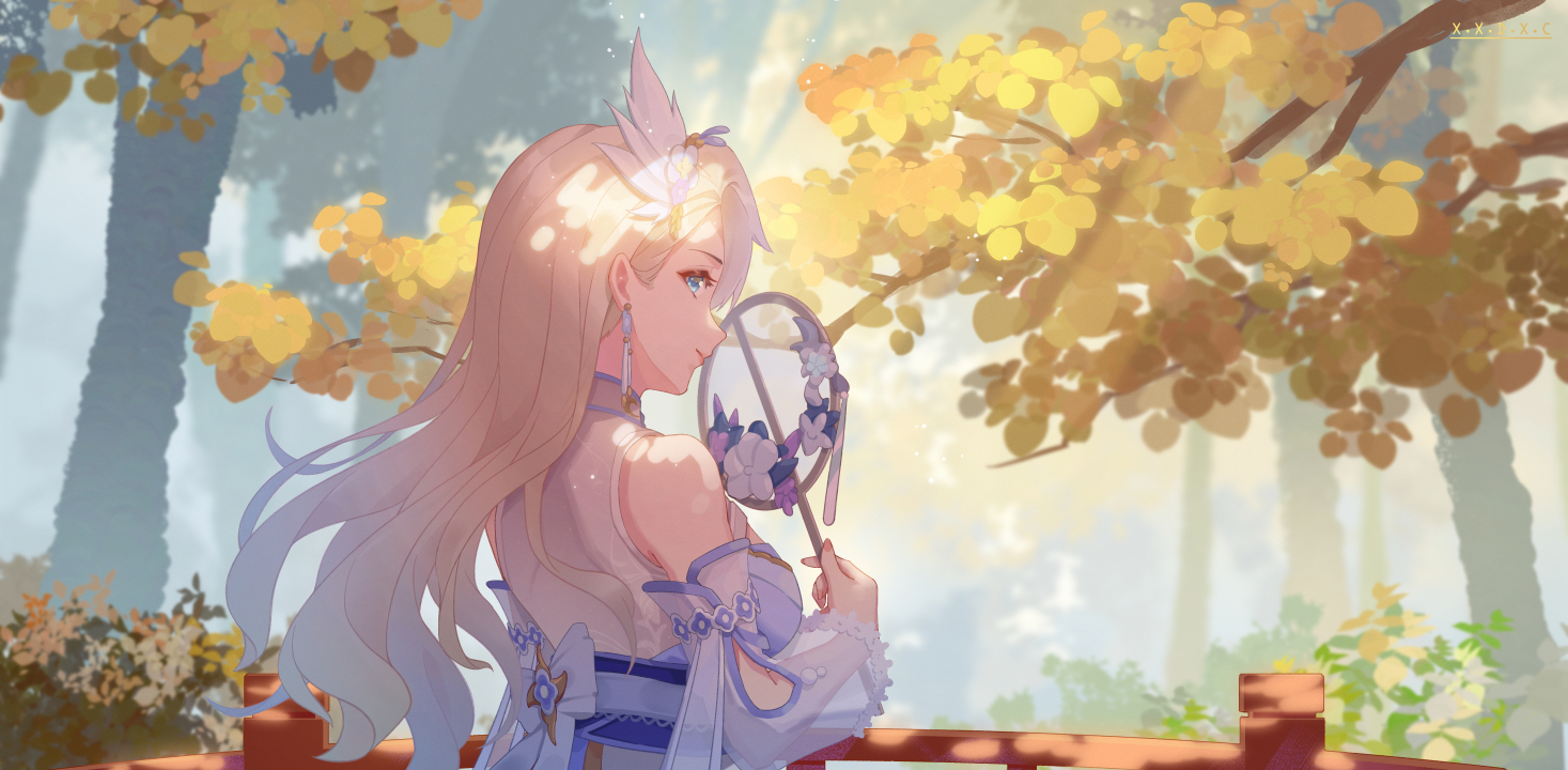 艾琳、蓝眼睛、灵魂、插图、动漫、女孩、树