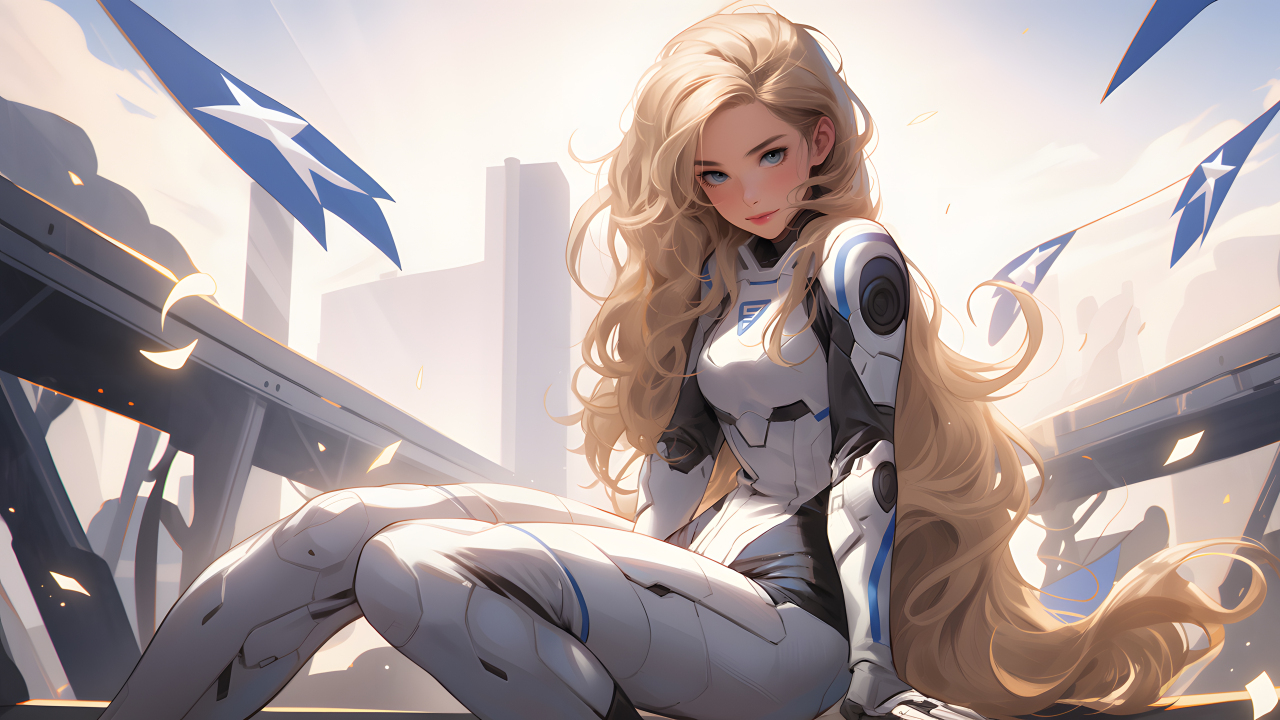 女人、长发、金发、艺术、紧身衣、旗帜、游戏