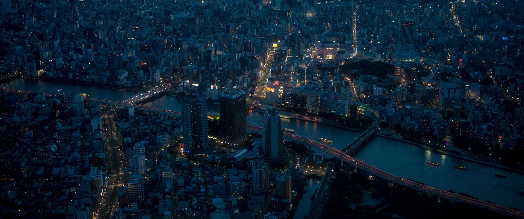 城市、交通、河流、路灯、鸟瞰、亚洲、城市景观
