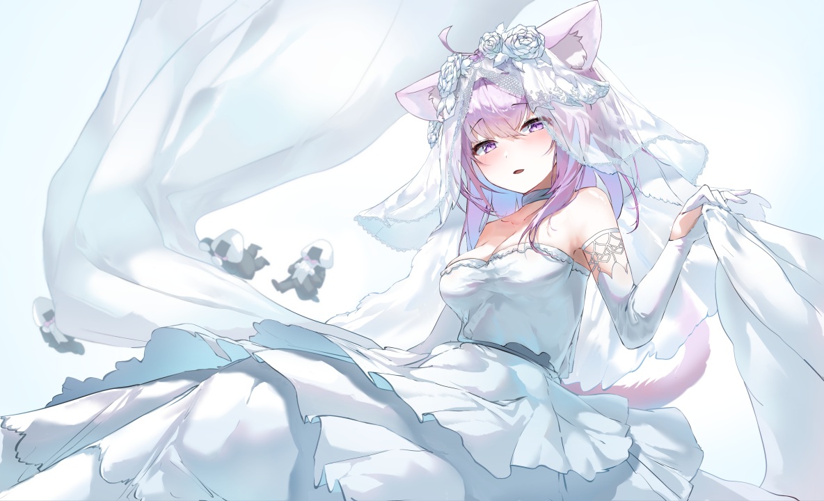 猫女孩、紫色、头发、动漫、女孩、虚拟、婚纱、新娘、眼睛