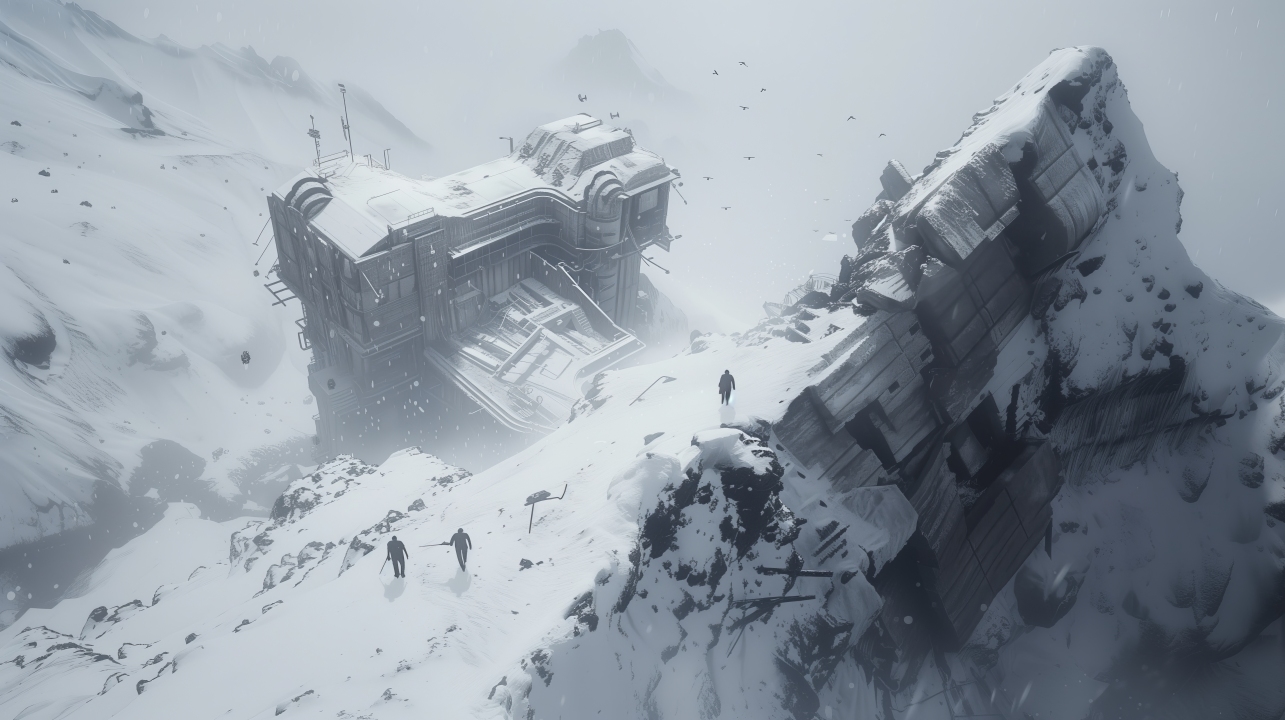 AI艺术、冬天、雪景、插画、科幻、概念艺术