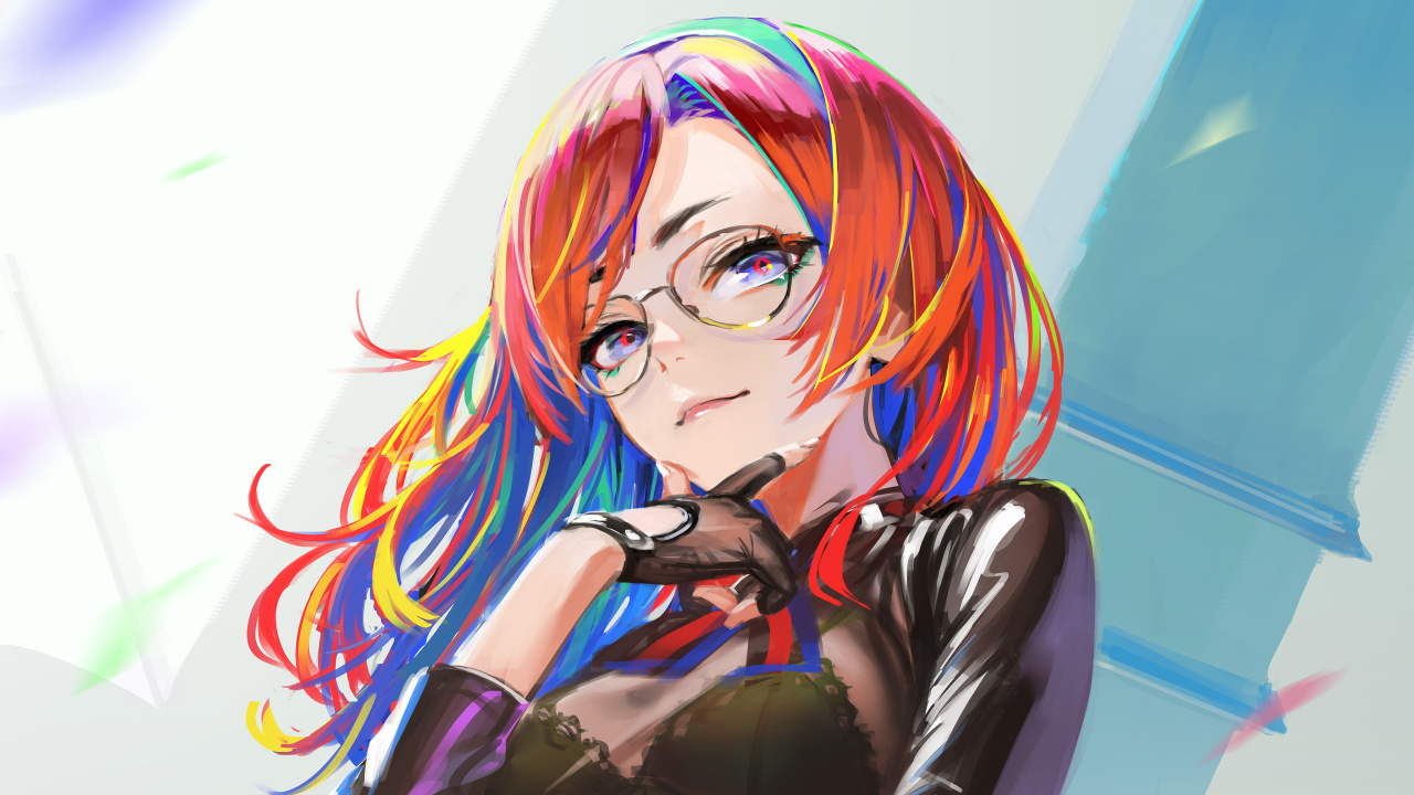 多色头发、动漫、女孩、剪裁、眼镜