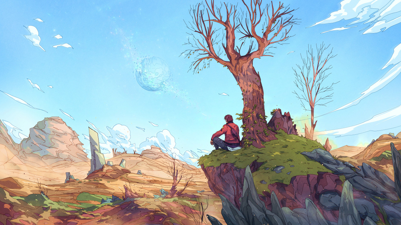 奇幻沙漠中的孤独探险者
