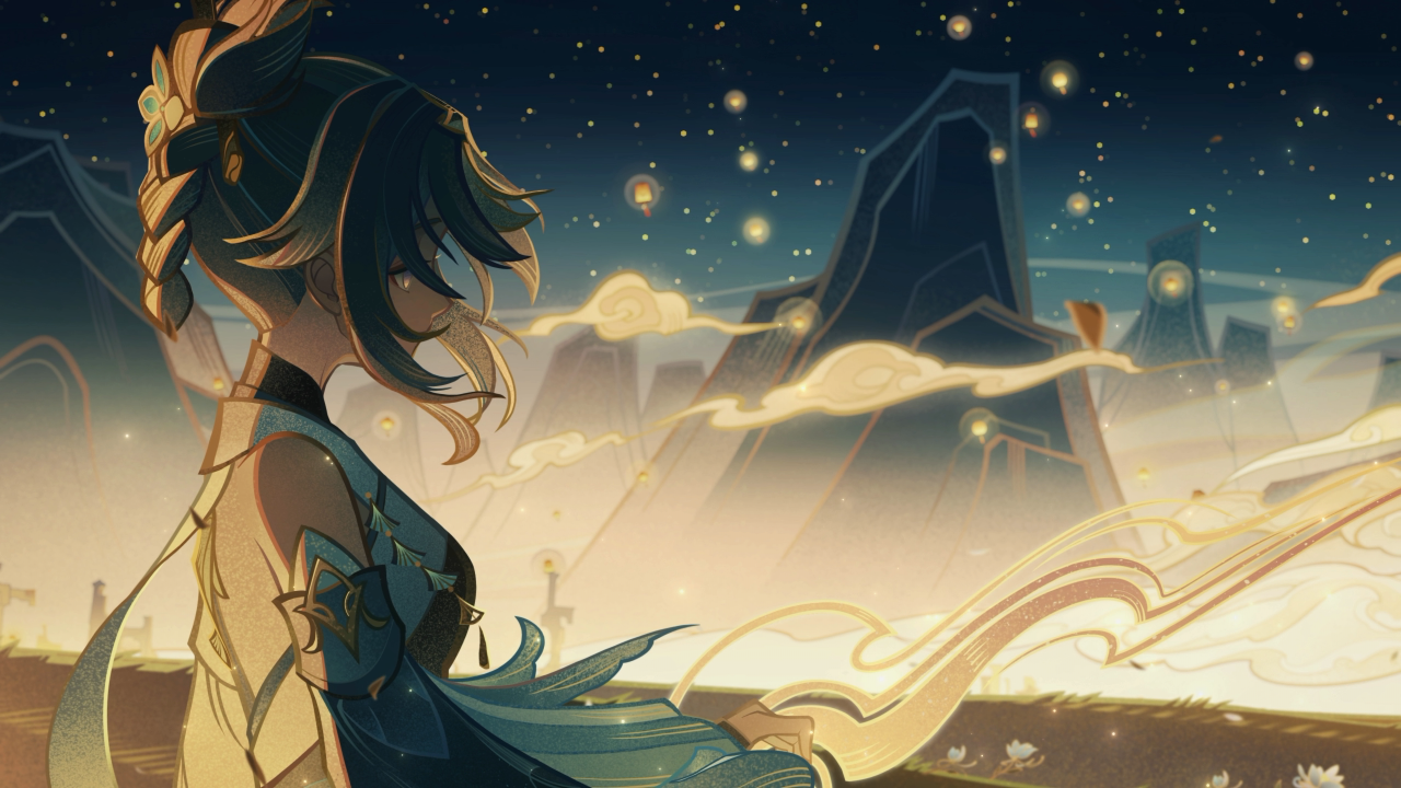 原神、动漫、女孩、屏幕截图、平夫人、汉服、古风、灯笼