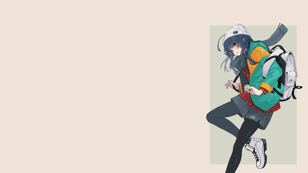 长发、营、棕色背景、动漫、动漫女孩、围巾、运动鞋
