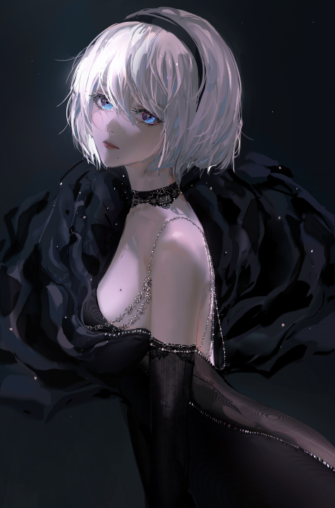 蓝色眼睛、白色头发、礼服、银饰品