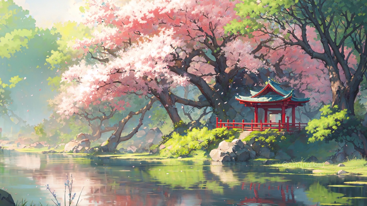 湖边的动漫女孩