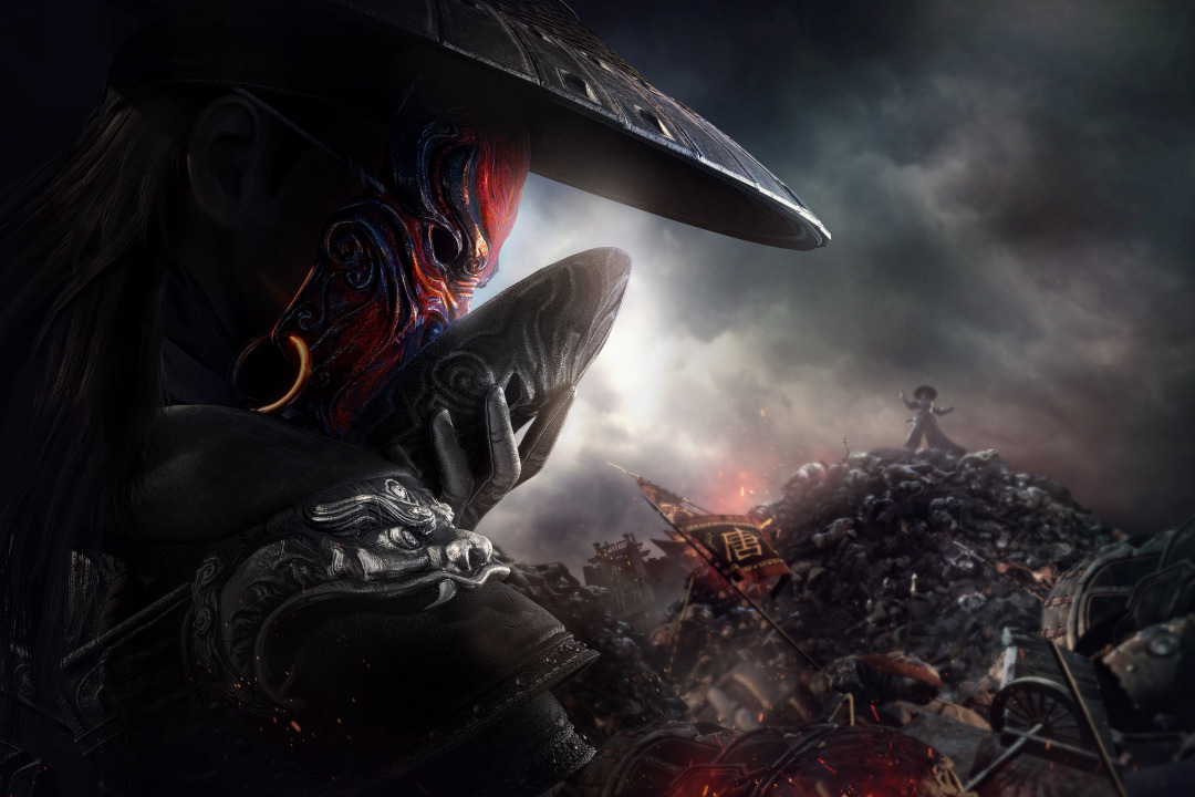 不良人、画江湖、帽子、面具、云、AI艺术、游戏、立绘、概念设计