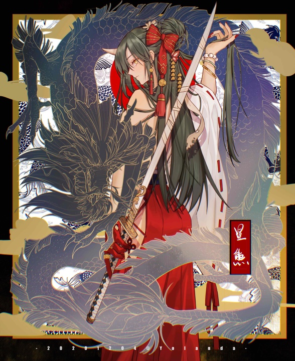 动漫、女孩、明日方舟、剑、龙