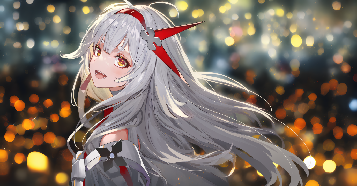 动漫、女孩、银发、黄眼睛、灯光、长发、绘画