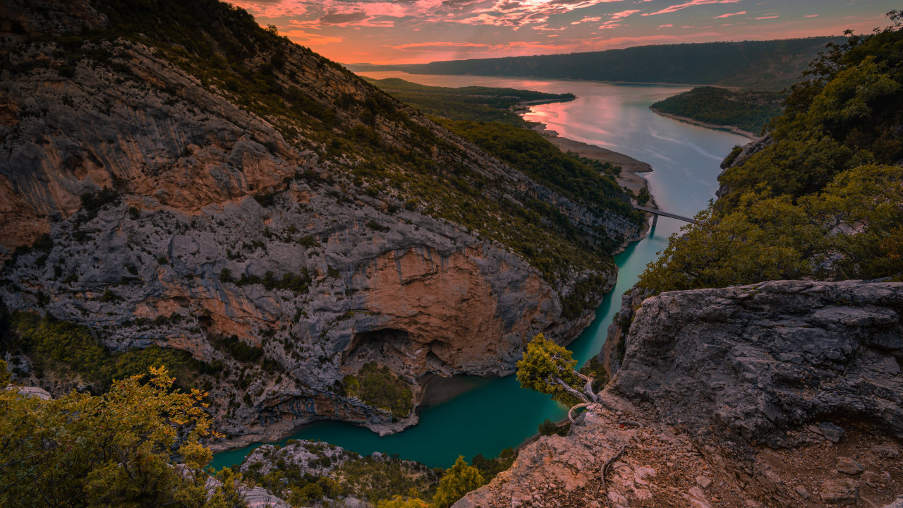 自然、景观、河流、水、岩石、树木、云、天空、日落