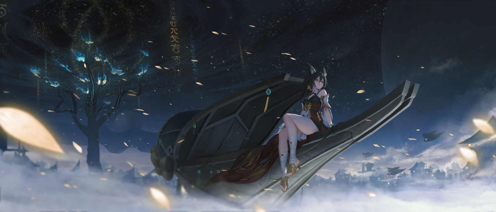 飞船、坐着、遥望、动漫、动漫女孩、电脑贴纸、8、K贴纸