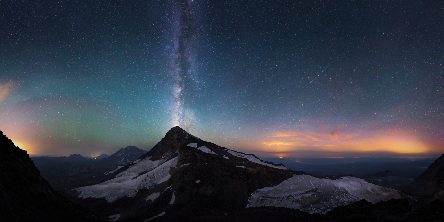 山脉、星星、风景、星光、银河、流星、冰川