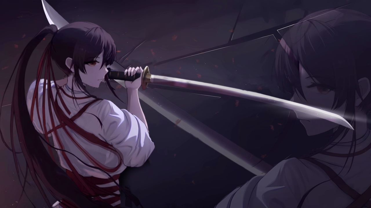 酷、可爱的、粉色、武士、动漫女孩、二次元