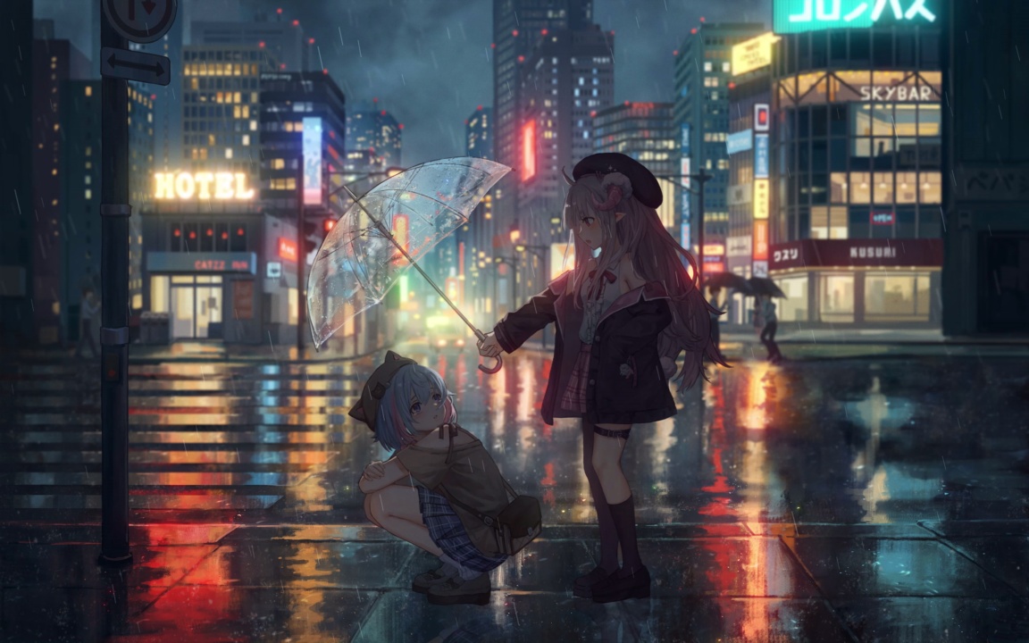可爱的、粉色、合成波、氖、动漫女孩、二次元