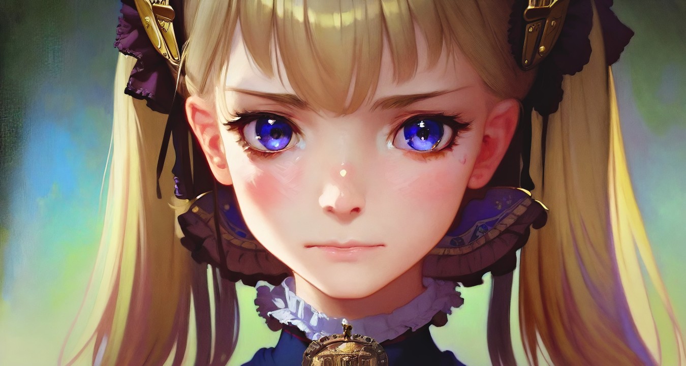 女人、脸、蓝眼睛、金发、双尾、艺术