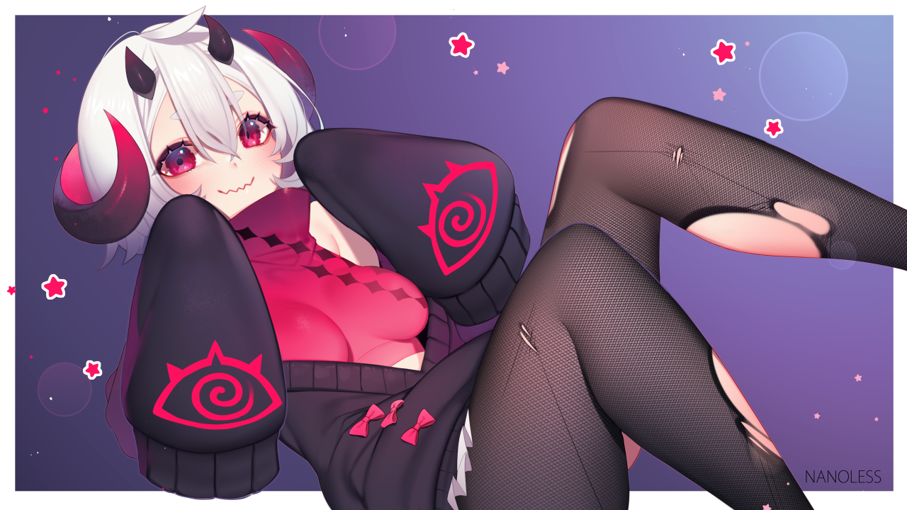 原创人物、角、红色上衣、毛衣、连裤袜、图片、绘图、插图、动漫、动漫女孩、脸红