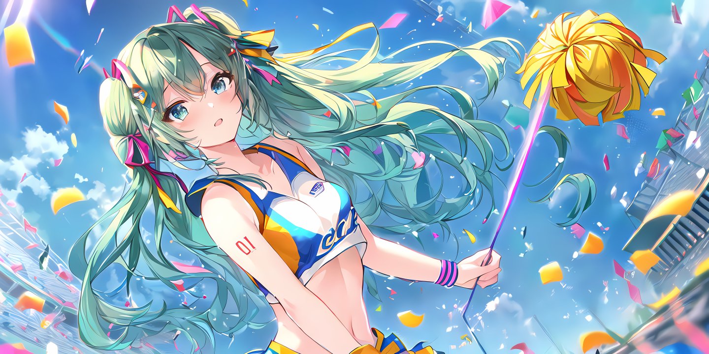 肚皮、初音、动漫女孩、小提琴、五彩纸屑、双尾