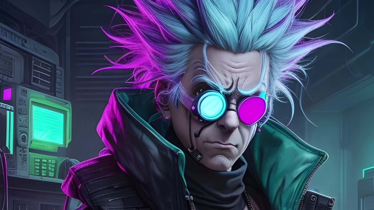 赛博朋克、瑞克和莫蒂、插画
