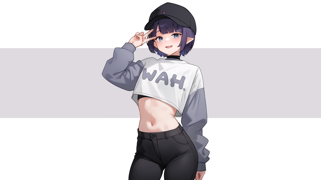 短发、肚子、腿、蓝田、动漫、女孩、极简主义、简单背景、白色背景、尖耳朵、紧身裤、紧身衣服