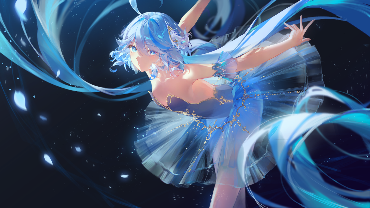 弯腰、多色头发、芭蕾舞演员、短发、手臂举起、芭蕾舞短裙、双色调头发、透明连衣裙