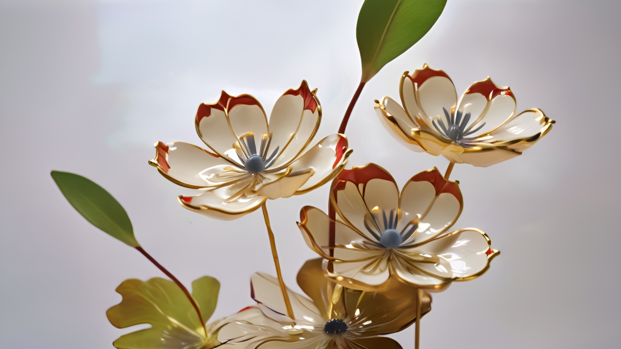 金边花韵:金色与白色陶瓷花朵的精致之美