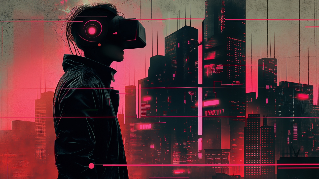 城市、赛博朋克、天际线、VR耳机、虚拟现实耳机