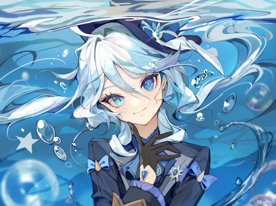 银色头发、蓝色头饰、指尖、动漫女孩、动漫、电脑贴纸、4K贴纸