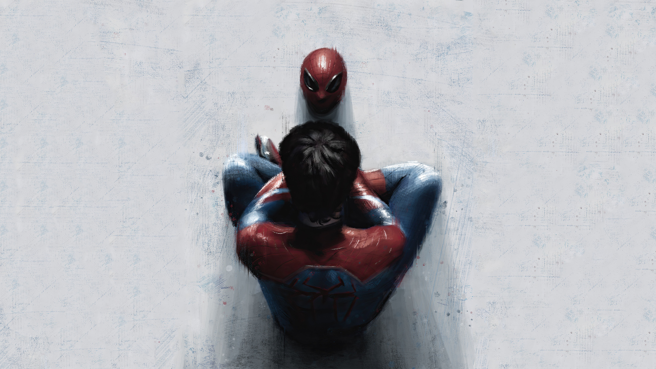 彼得、蜘蛛侠、面具、AI艺术、数字绘画、漫威、漫画、超级英雄