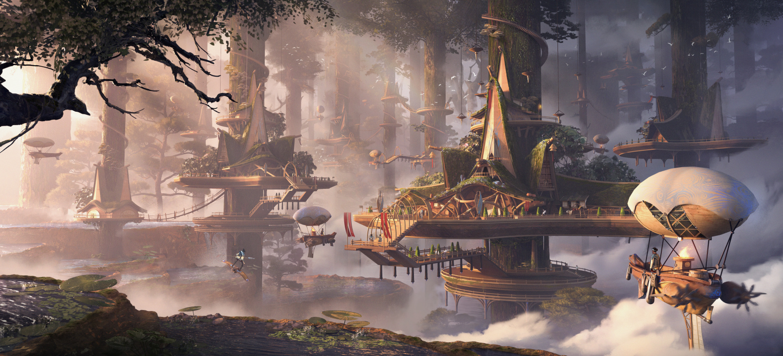 奇幻建筑、奇幻艺术、村庄、森林、树木